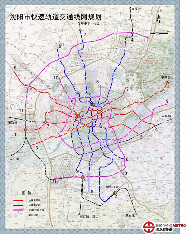 沈阳地铁线网规划于2008年修编完成,线网规划由“四横、四纵、两L、一弦线”共11条线路组成,总长约400公里。