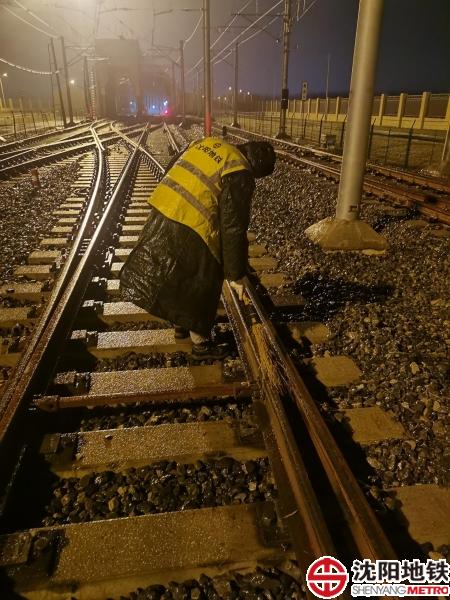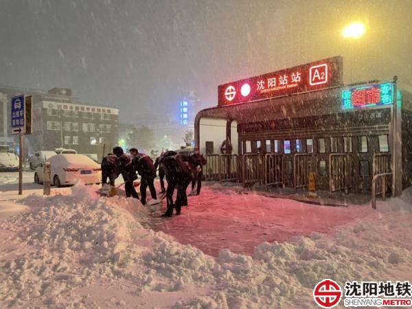 以雪为令,接到暴雪预警后沈阳地铁迅速启动应急响应,提前对冬季防寒设备设施及物资再次开展自检自查,确保除雪铲、除雪装载机等除雪物资设备数量充足、状态良好,随时做好抢险准备。自降雪开始沈阳地铁近两千余名员工迅速行动开展除雪抢险及运营保障工作,各车站视积雪情况定期清扫出入口积雪,铺设防滑垫,加强积冰和站内积水清理,并加强站内广播,提示乘客注意出行安全。在保障地铁正线安全运营的同时,场段除雪队负责重点防范道岔转辙机冰冻灾害,夜间每小时巡视、除雪除冰,并结合实际状态加密处置或在室外设备旁值守。接触网除冰队定期巡视接触网结冰情况,发现结冰情况及时进行打冰处理,避免发生影响列车运行情况发生。