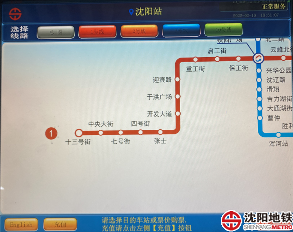 2.请在线路图界面点击触摸屏,选择目的车站。