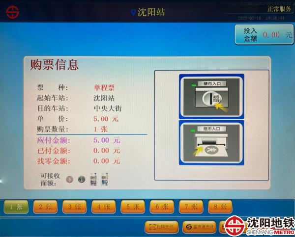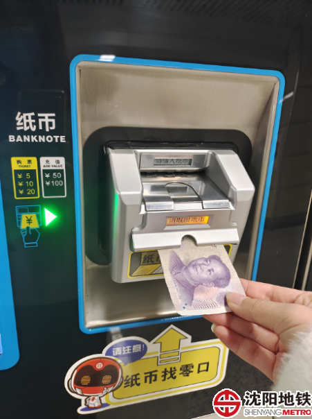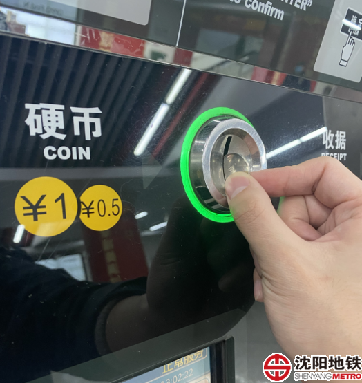 (2)自动售票机接收1元、5角硬币和面额为5元、10元(9、10号线也可接收20元)纸币,纸币需平整逐张插入纸币接收口。